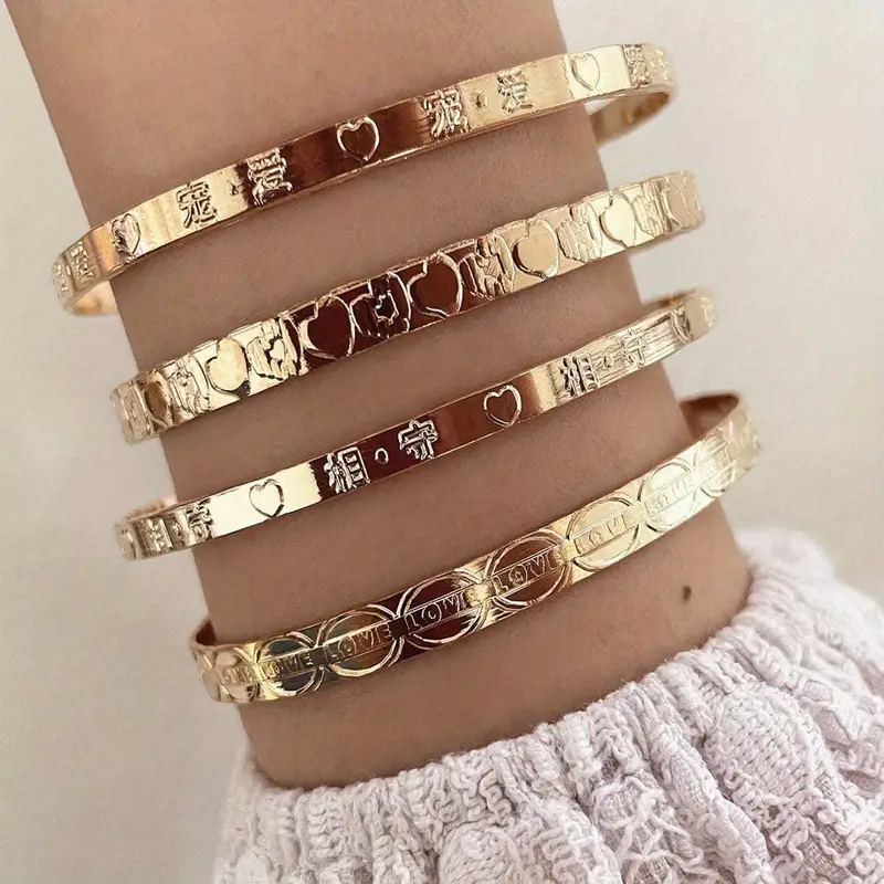 4pcs Fashion Gold Bangles Set Bohemian Bracelet Love Bracelets Female Jewelry Charms Fashion Women Jewelry Gifts